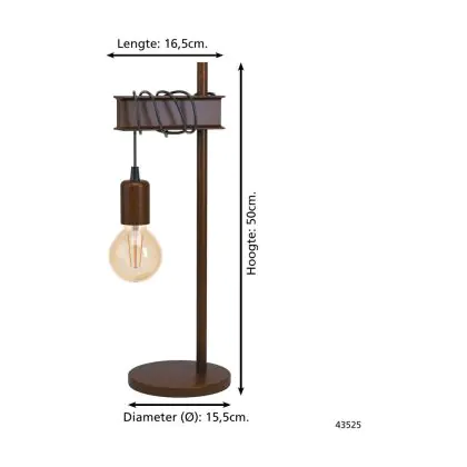 Eglo Lampada Da Tavolo Townshend 4 Acciaio Marrone Nero | IP20 - Adatto per 1x E27