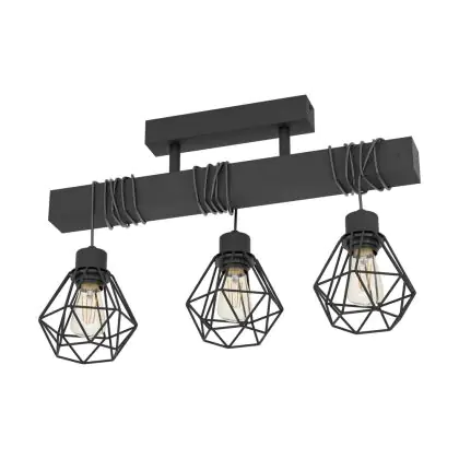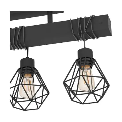 Eglo Luce da soffitto Townshend 5 Acciaio Legna Nero | IP20 - Adatto per 3x E27