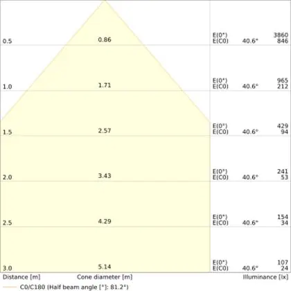 L'apertura del fascio luminoso indica l'angolo del fascio di luce proveniente da una lampada o lampadina. Si misura in gradi (D) e più piccolo è l'angolo, più piccola è l'apertura del fascio di luce.
