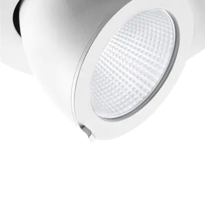 Un apparecchio con design inclinabile consente di dirigere l'illuminazione in modo specifico su un oggetto o una superficie. Ciò può rivestire un ruolo particolarmente importante nei negozi (mettendo in risalto una nuova collezione) o nelle gallerie (accentuando le opere d'arte). Può anche influenzare il comportamento di acquisto o l'interpretazione dei visitatori.