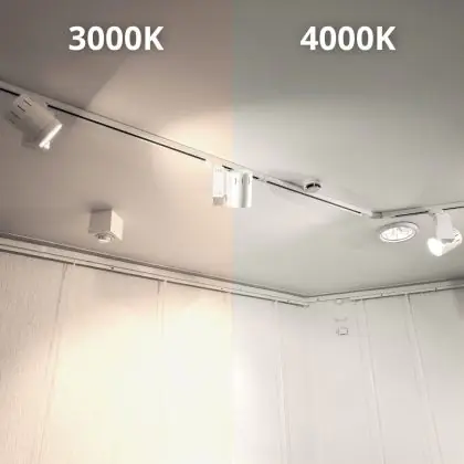 Il modo in cui un faretto LED a binario illumina i prodotti e/o gli oggetti dipende dalla temperatura di colore della luce e dalla resa cromatica (CRI), che in questo caso sono 4000K - Bianco Freddo e 90-99 - Perfetta resa cromatica Ra.