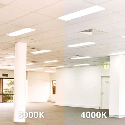Per quanto riguarda il colore della luce, ci sono diverse opzioni fra cui scegliere, ognuna con una diversa applicazione. Una luce di 3000K (bianco caldo) è particolarmente adatta alle aree generali, mentre la luce di 4000K (bianco freddo) favorisce la concentrazione e l'attenzione e quella di 6500K (bianco luce del giorno) è l'opzione migliore per i luoghi in cui serve avere una buona visibilità dei dettagli. Questo particolare apparecchio ha temperatura di colore di 3000K - Luce Calda.